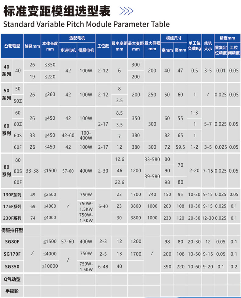 •根据负载的重量和分布情况,选择合适的变距模组型号。确保模组能够承受实际负载,避免过载导致的损坏或失效。